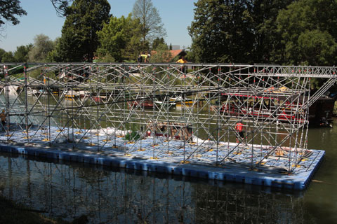 Besonders für die Kinder waren die Schwimmplattformen im Rahmen des Events Regionale12 ein ganz besonderes Erlebnis und begeisterten die jungen Besucher enorm. Die Schwimmplattformen wurden bereits vor der Veranstaltung von dem fachlich kompetenten Personal von rentafloat montiert und nach dem Event auch wieder binnen kürzester Zeit demontiert. Selbst der Umstand, dass die Veranstalter besondere Wünsche bezüglich der Gestaltung Plattformen äußerten, stellte für das Fachpersonal von rentafloat absolut kein Problem dar, denn die Pontonsysteme lassen sich generell individuell zusammenfügen und zu der gewünschten Schwimmplattform montieren.
